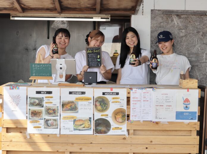 リーダー役の人間健康学部4回生の祖田友(ゆう)さんによると、1日の売上は平均2~3万円、夜営業がある週末は7万円ほどになるという盛況ぶりだ。ゼミ生の表情も、海のようにキラキラ輝いていた。