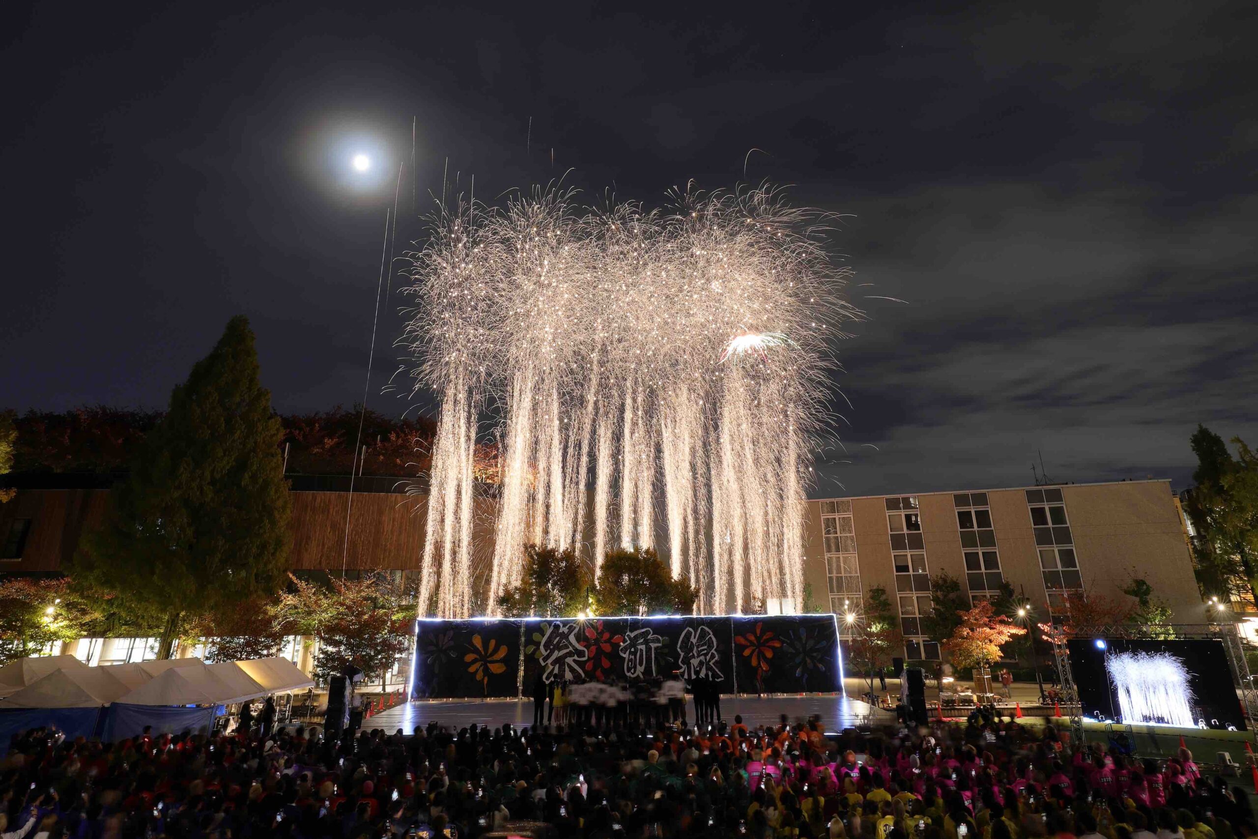 でっかい花火を打ち上げた。この日、中央ステージでの後夜祭で、同祭常任委員会委員長の山田拓登さん(文3)が「この学園祭、第48回関西大学統一学園祭は、過去、歴代最高来場者数を達成しました!」と涙を流しながら報告すると、2000人の参加者が大いに沸いた。