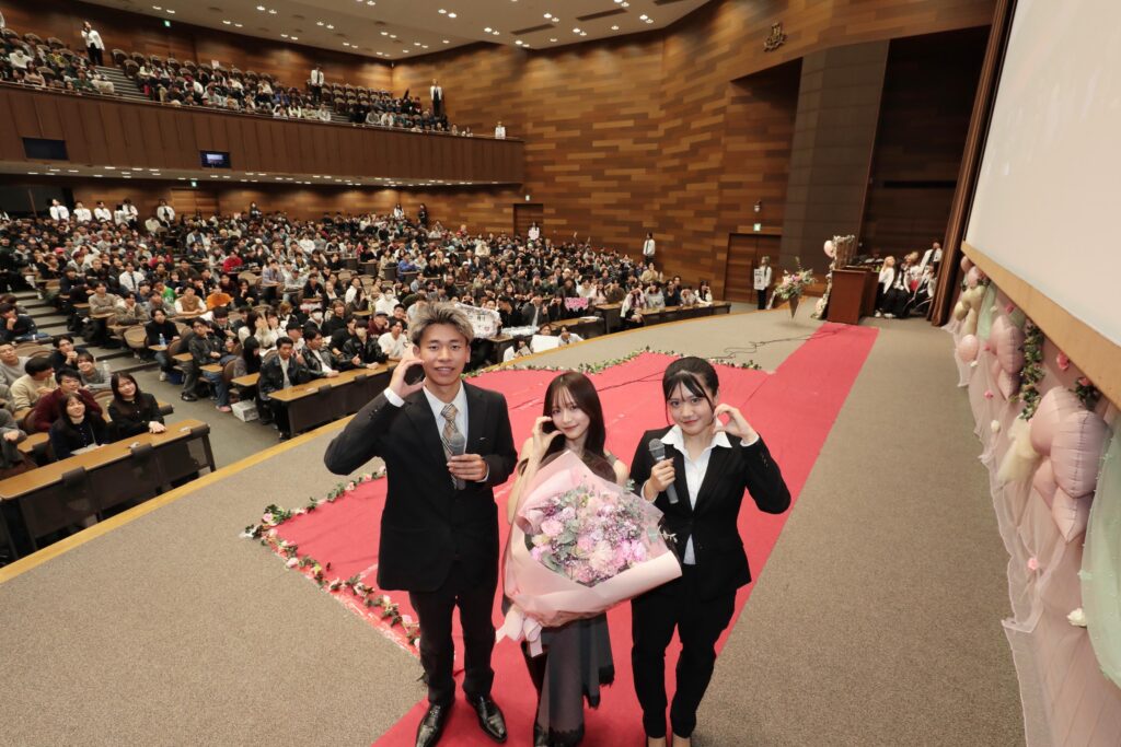 まるで“恋愛心理学”の授業のような1時間のトークショーで1000人をメロメロに。「みなさんのエネルギーをいただいたおかげで、これからも頑張れる。これから就活、勉強などいろいろあると思うんですけど、私も応援しています。頑張ってください!」と関大生にエールを送った。【佐野日向子、中野廉士】