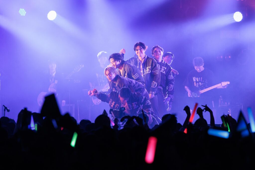 「Now or NEVER」では「これ以上のブチ上がりをお届けします!しゃがんで、ジャンプ!」と数原さんが両腕を何度も上げると、3600人が一斉に飛び跳ねる。6人はステージ から降り、会場後方までアリーナを疾走。必死に両手を伸ばす観衆に届きそうな距離まで近づいた。