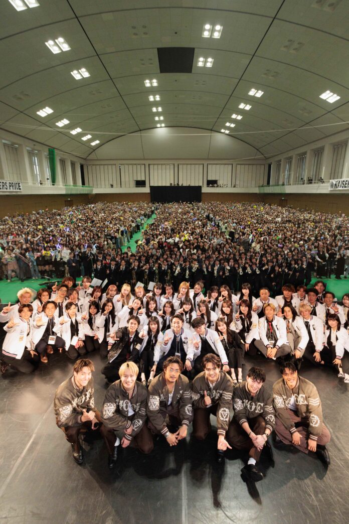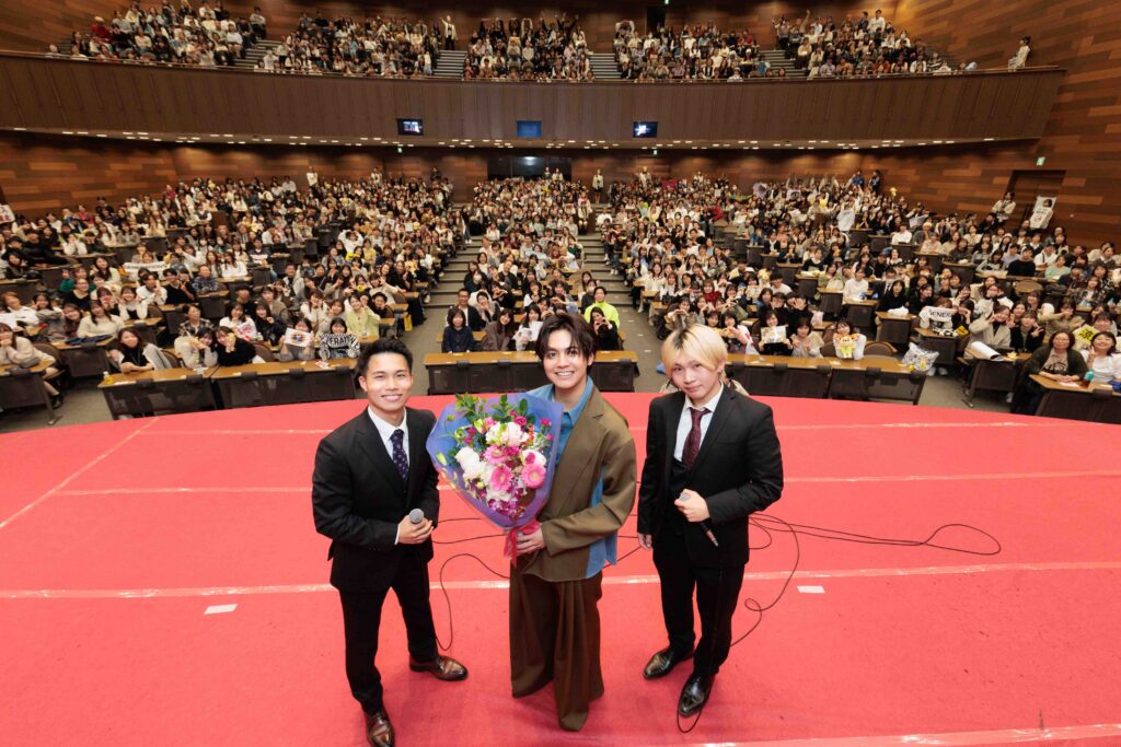 中央体育館が上下に揺れた。3600人の関大生とDREAMERS(ファンの呼称)の異常熱気が、開演前からキャンパスに渦巻いた。リーダー・白濱亜嵐さん(32)、ボーカルの片寄涼太さん(31)、数原龍友さん(32)、パフォーマーの小森隼さん(30)、佐野玲於さん (29)、中務裕太さん(32)がステージ上に姿を現すと、悲鳴に近い歓声が起きる。