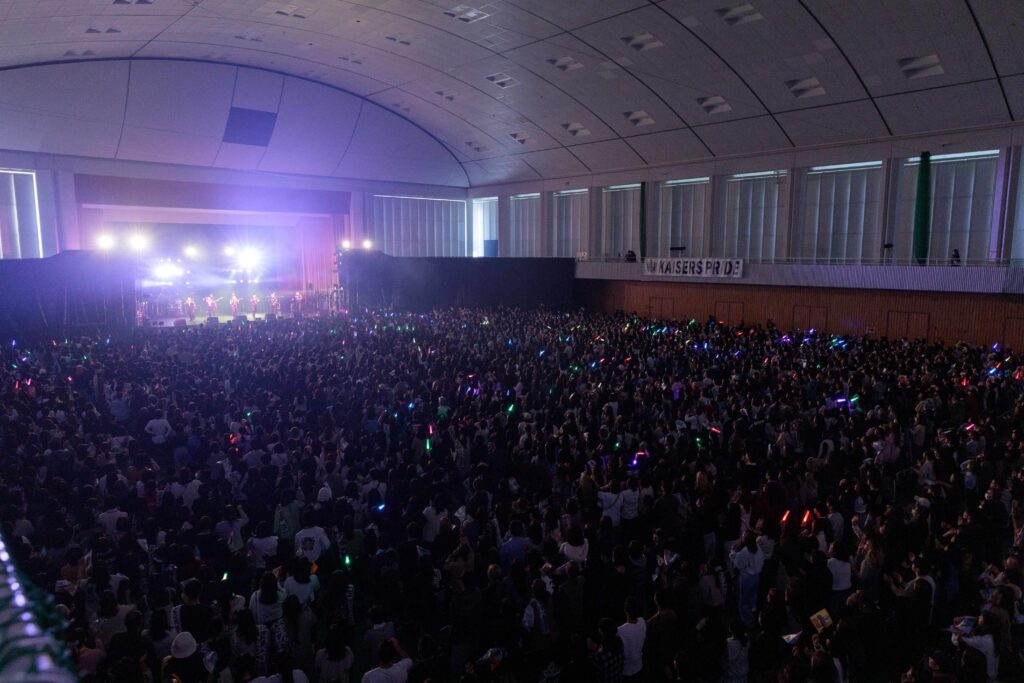 数原さんが「今回初の学園祭。最高の盛り上がりにしましょう!一緒に踊っていきましょう!関西大学統一学園祭、スペシャルなショーを用意してきた。最後まで一緒に楽しんでください!」と呼びかけると、オープニングの「AGEHA」からボルテージは最高潮に達した。
