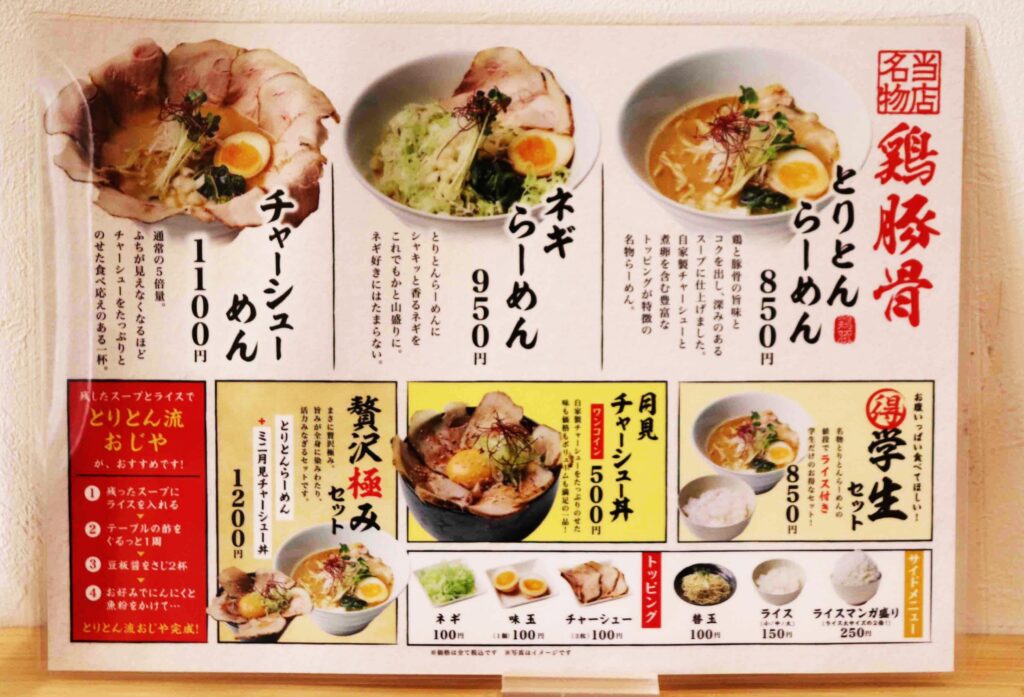 ラーメン同好会の部員も、店のスタッフとしてバックアップする。関大前のラーメン店にはあまりない鶏豚骨ラーメンの「とりとんらーめん」(税込850円、学生はライス付き)がメイン。山盛りネギの「ネギらーめん」(同950円)、器の縁が見えないほどのチャーシューが乗った「チャーシューめん」(同1100円)のラインナップがそろった。
