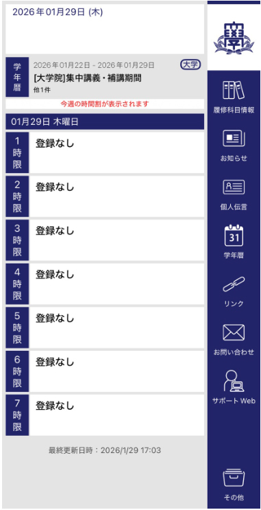 時間割や成績、休講の情報など、現在のアプリ機能に加え、パソコンから閲覧するインフォメーションシステムの機能を加える。「関西大学が持っている、学生たちに提供しているさまざまなサービスをこのアプリに集約する。アプリを見れば、自分がやりたいことに関西大学がどういったサポートをしてくれるのか、どういった支援をしてくれるとかがわかる、まずポータルサイト的な機能を充実させる」と説明した。