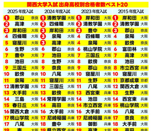 【ランキング掲載】関西大学2025年度入試出身高校別合格者数...