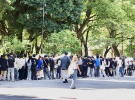 関西大学統一学園祭の講演会チケット販売に長〜い列 レイクレ1...