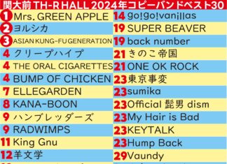 関大前のライブハウス「TH-R HALL」がこのほど、2024年に同ライブハウスに出演した約500組の「コピーバンド」(コピバン=有名バンドの既存の楽曲を演奏するバンド)のセットリストを集計し、コピバンのランキングを発表した。