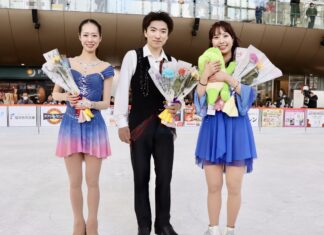 関西大学体育会アイススケート部の木科雄登さん(大学院社会安全研究科M1)、久保智聖(ちさと)さん(人間健康4)、木下咲良さん(文3)の3選手が28日、福井県福井市のJR福井駅に隣接した複合施設・ハピリンに設置された冬季限定アイススケートリンク「ハピリンク」で、関西大学アイススケート部スペシャルショーと銘打ったアイスショーに出演した。